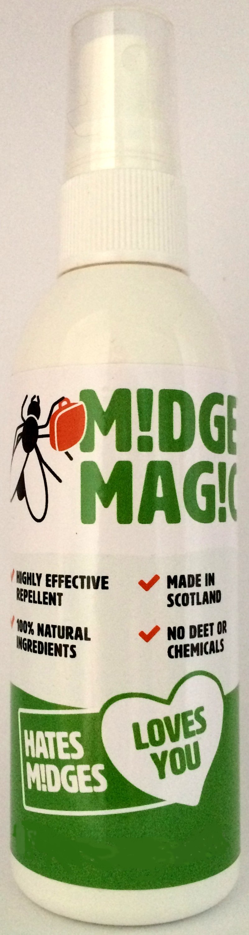 Our natural midge repellent is Midge Magic, which works very well even in the thickest clouds of midgies. It's effective against midges, mosquitoes, ticks and other biting insects. There's also Tick Magic, the names speak for themselves! They're made in Scotland, the active insect repellent ingredient is CitRepel, an extract of lemon eucalyptus. They come in a pump spray or lotion and are 75 mls in size. Midge Magic has the scent of bog myrtle, and Tick Magic is also very pleasant smelling. They're highly effective and safe for kids.